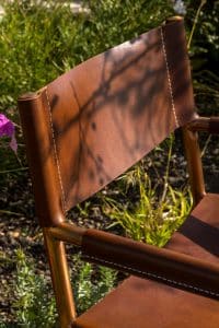 Het terras, dat werd aangeplant door Bart & Pieter, baadt de ganse dag in de zon. De bijen en de vlinders vliegen je hier letterlijk om de oren. Die setting vraagt om meubilair die de lijnen en materialen van de natuur volgen. Organische vormen die de natuurlijke flow op dit terras volgen, en zelfs extra in de verf zetten.